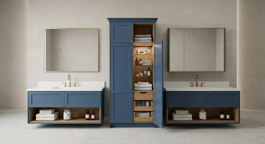 Aydınlar Door banyo dolapları, modern tasarım çizgileri ve yüksek kalite standartlarıyla banyolarınıza şıklık kazandırır. Suya ve neme dayanıklı özel malzemelerden üretilen yapısı sayesinde uzun yıllar boyunca ilk günkü formunu korur. Fonksiyonel depolama alanları ile düzenli bir kullanım sunarken, estetik detaylarıyla banyolarınıza zarif bir dokunuş katar.